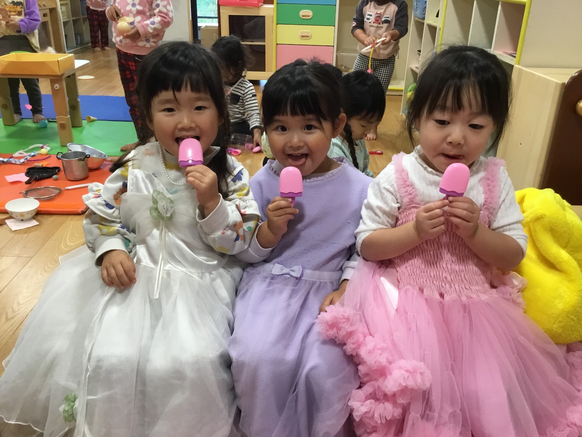 R7.8.19 カレークッキング ~給食室より~ 園の畑で育てた野菜を使って、子どもたちみんなでカレー作りをしました。野菜を切ったり洗ったりつぶしたり、お米を洗ったりたくさんお手伝いをしてくれました。どの子も張り切って取り組んでいました。 ゆめ(0歳児)・ひかり(1歳児)は、なすとじゃがいもをジャブジャブきれいに洗い、洗った野菜を以上児の部屋まで持っていき、「はいどうぞ。」と渡していました。 そよかぜ(2歳児)は、玉ねぎの皮むきに挑戦!手でコロコロ転がしたり、小さな指で一生懸命に皮をつまんでむいたりして頑張っていました。 だいち(3歳児)たいよう(4歳j児)・あおぞら(5歳児) 米とぎや型抜きなどは以上児さんにおまかせ!4.5歳児は、ピーラーや包丁を使っての調理もしました。それぞれの役割を一生懸命取り組む姿が見られ、とても頼もしく感じました。 自分たちの手で作ったカレーは、格別な味わいだったようで、「美味しい!!」「見て!ウサギの形をした人参があるよ!」とたくさん笑顔を見せながら食べてました。おかわりをする子も多く、心もお腹も満たされた一日となったようです。自分の役割をやり遂げた達成感と、出来上がった喜びをたっぷり味わうことができました。 ※大和善隣館チャンネルで、動画配信中 R7.7.14~18 夏祭りウィーク あおぞらさんが中心となってやりたい事を話し合い、お化け屋敷やゲームコーナー、屋台などを計画して作り上げてきました。当日は自分の役割を果たそうとする姿や異年齢での密な関わりが見られ、子どもたちの成長に保育者も温かい気持ちになりました♡ 夏祭りの最終日には期間中、日替わりで出していたコーナーを全て出し、子どもたちが自由に遊べる環境を設定してみると、今までお客さん役だったたいようさんやだいちさんもお店屋さんになりきり、あおぞらさんにしてもらったことを思い出しながら未満児さんに関わる姿が見られ、異年齢交流の深まりを感じました。夏祭りウィークが終わっても、みんなで作った夏祭りコーナーは継続し友だちや異年齢での関わりを今後も大切にしたいと思います♪