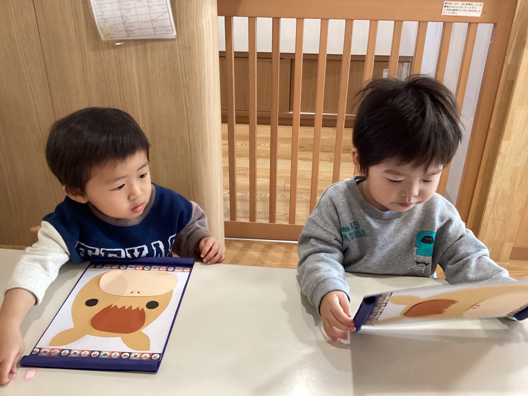 R7.6.5 1歳児(ひかり)・2歳児(そよかぜ) 毎日、交流を楽しんでいます 2歳児さんがパズルをしているのを見て1歳児さんも挑戦したり、 2歳児さんが1歳児さんのお友たちにおもちゃを渡してあげたり、ぎゅーっと抱きしめていたりと優しく接している姿が見られるようになってきました。小さい子への思いやりの気持ちが育まれているんだなぁと、私たちもほっこりと嬉しく笑顔になっています。また楽しく遊んだ後のお片付けになると、子どもたち同士で「ここにいれるよ」とお話ししながら上手に片付けする姿が見られています。
